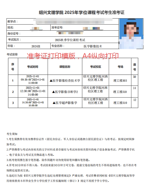 绍兴文理学院高等学历教育24级(第四学期)学位课程考试即将开始,现将本次考试有关要求通知如下:
