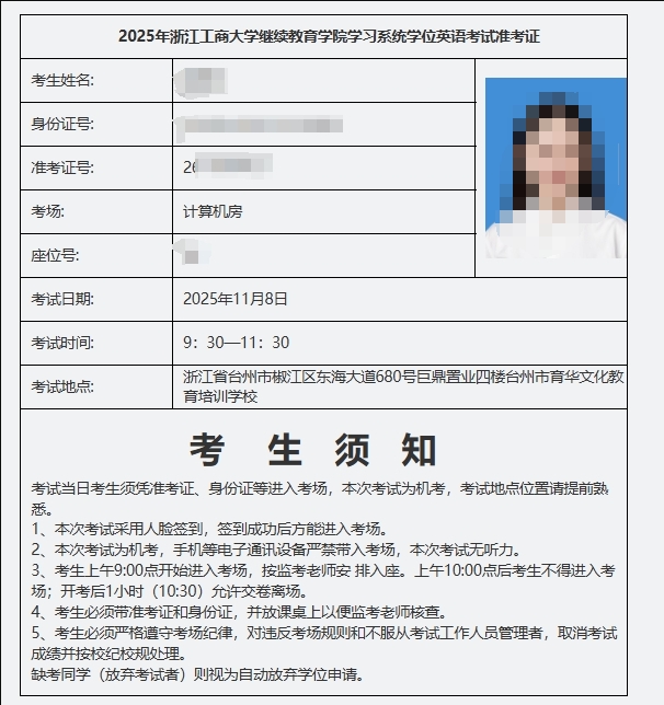 根据《浙江工商大学成人高等学历教育学士学位授予工作细则》,经学校研究决定,2024级本科毕业生申请学士学位英语考试兹定于2025年11月8日(周六)上午举行,具体事项通知如下。