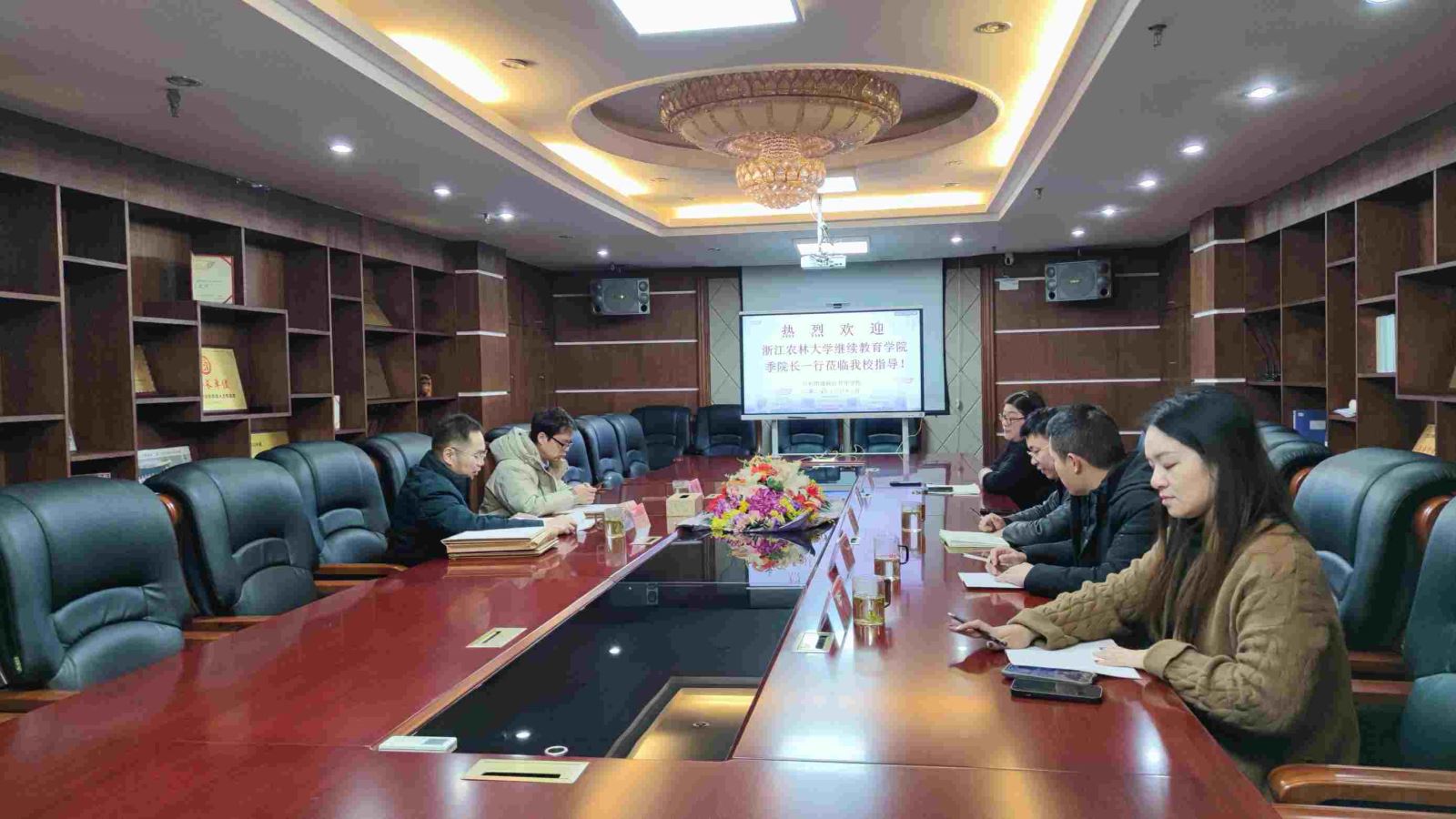 交流期间,季院长一行实地考察了我校教学场地与办学环境,通过现场察看、细致问询,全面了解我校继续教育的办学定位、专业布局、教学管理及学员服务等具体情况。在认真听取我校工作汇报后,季院长对我校坚守教育初心、深耕地方人才培养的实践成效给予高度肯定。结合浙江农林大学继续教育学院的办学积淀与行业优势,季院长紧扣我校发展需求,重点就课程体系优化、“双师型”教师队伍建设、数字化教学平台应用等方面提出建设性指导意见。他强调,继续教育办学需立足地方产业发展需求,精准锚定人才培养方向,打造特色鲜明、实效突出的办学品牌,让人才培养更贴合社会发展脉搏。