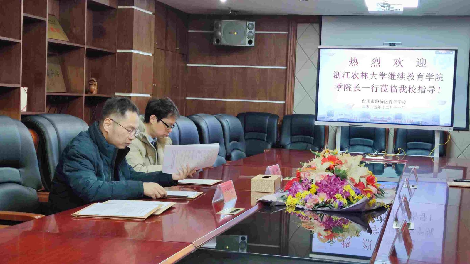 为深化校校合作内涵,共探继续教育高质量发展路径,近日,浙江农林大学继续教育学院季宗富副院长带领学院核心骨干团队,莅临台州市路桥区育华学校开展专题指导交流。我校沈孔军校长携相关部门负责人热情接待,双方围绕人才培养、产教融合、资源共享等核心议题展开深度研讨,凝聚合作共识。