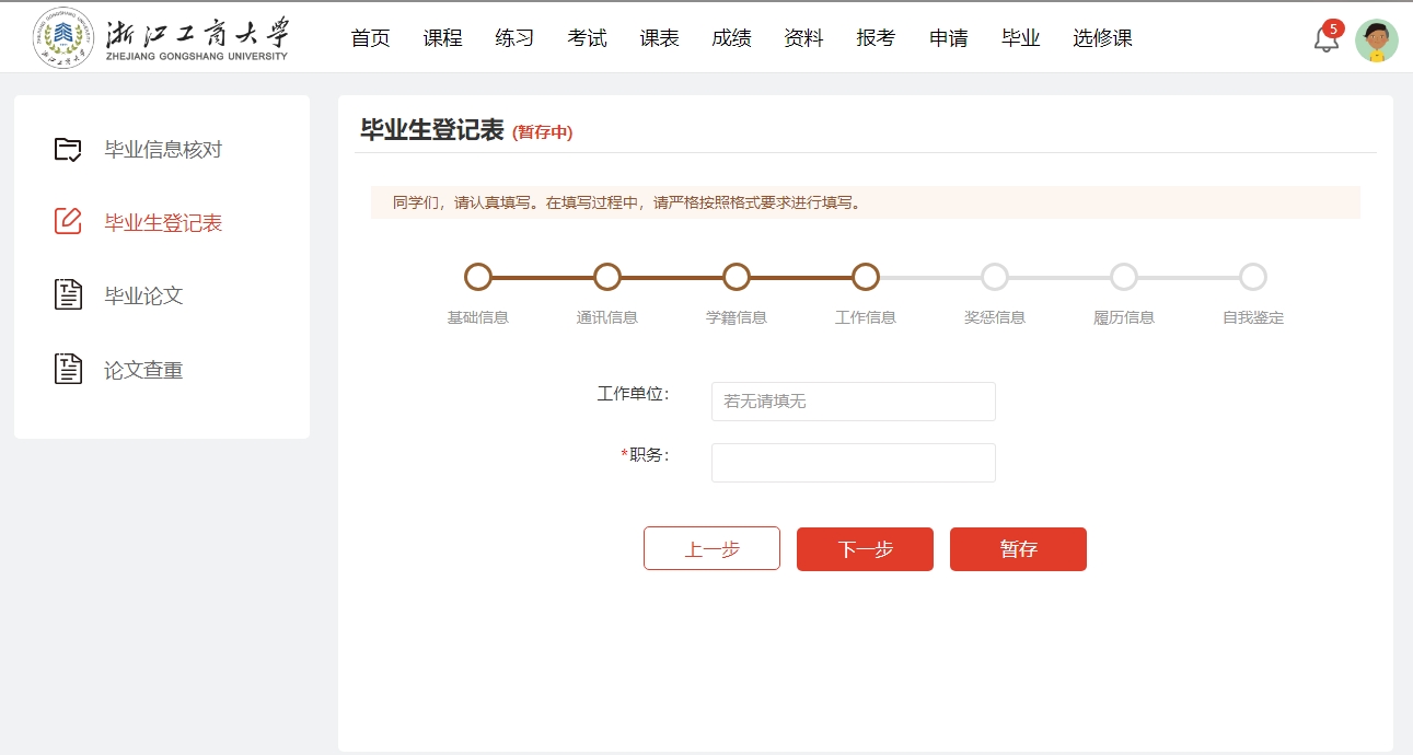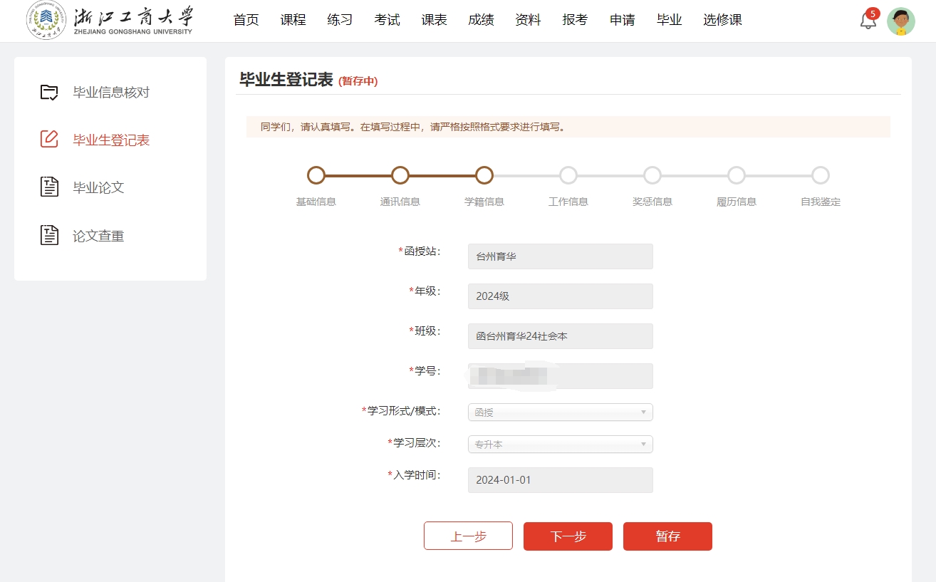 浙江工商大学继续教育学院2024级本科毕业生填写《毕业生登记表》开始了,《毕业生登记表》是毕业生档案里的重要内容,请每一位学生高度重视,认真对待,务必根据以下要求按时完成填报任务,未在规定时间内完成填报者,将无法按期领取学历证书和档案,现将填写步骤公布如下:
