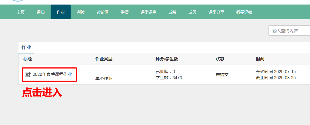 第五步:点击页面中的2020年春季课程作业,进入答题页面(如图四);
