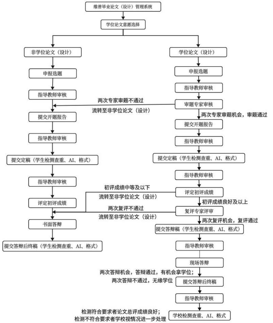 四、本科毕业论文唯一指定检测平台:维普毕业设计(论文)管理系统(网址:https://vgms.fanyu.com/),操作流程见表二中的维普毕业论文系统学生操作手册。