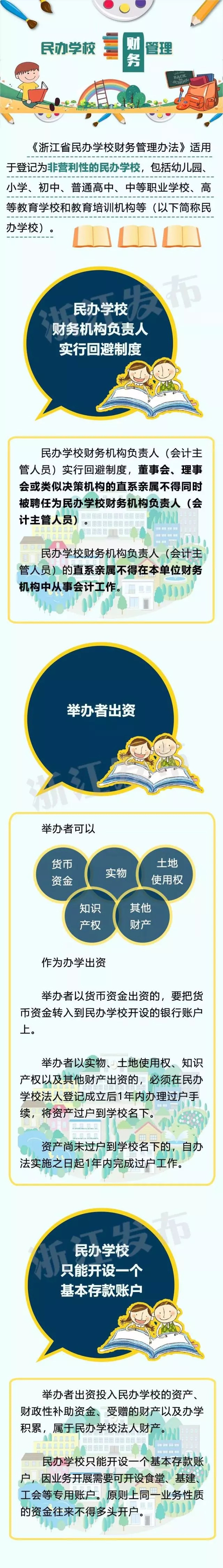 今年1月,浙江出台《关于鼓励社会力量兴办教育促进民办教育健康发展的实施意见》,促进民办教育发展。而近日,浙江省省财政厅、省教育厅发布了《浙江省公共财政扶持民办教育发展实施办法》《浙江省民办学校财务管理办法》,从财政方面保障并推进浙江民办教育发展。