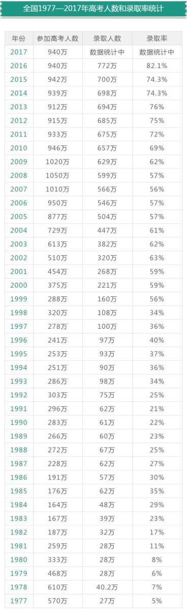 5月8日上午,教育部组织召开2018年全国普通高校招生考试安全工作电视电话会议,从会议获悉,2018年全国高考报名考生人数达到975万人,比去年增加35万人,是近八年来高考人数最多的一年,历年高考人数详见下文统计。