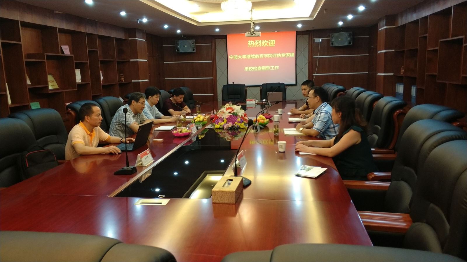 2018年6月26日下午,宁波大学继续教育学院专家组来我校进行现场考评工作,校长沈孔军出席会议并讲话,招生办主任,教务主任等相关部门负责人参加会议。