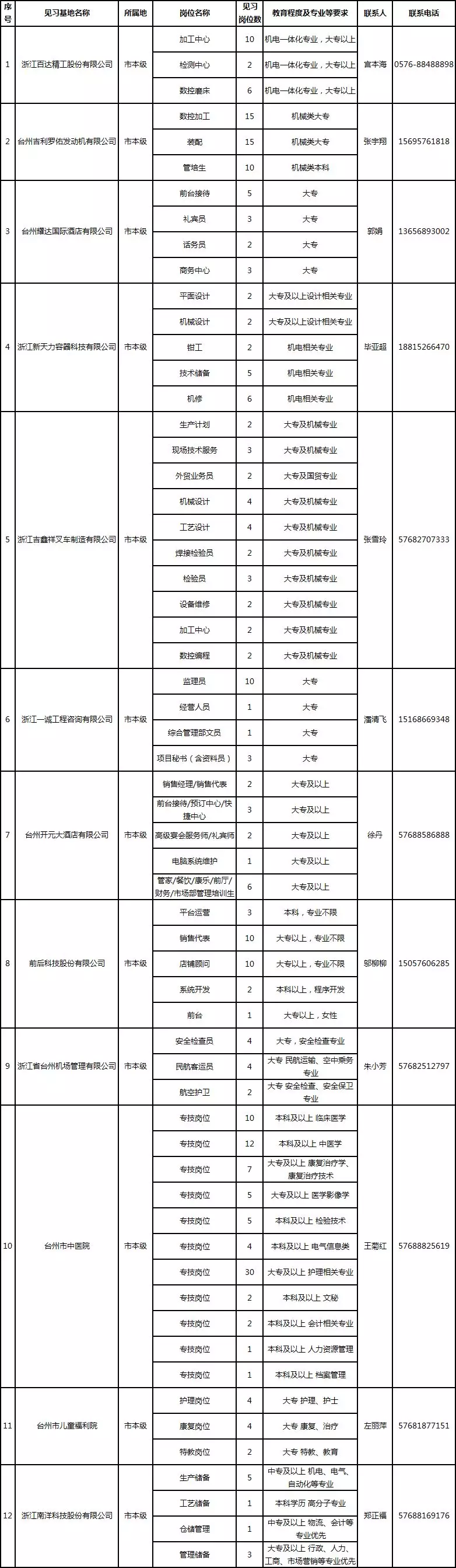 根据《台州市人力资源和社会保障局 台州市财政局关于印发台州市高校毕业生就业见习管理实施办法(暂行)的通知》(台人社发〔2018〕60号)文件精神,经各单位申报,市人力资源和社会保障局审核,市本级12家单位被认定为台州市高校毕业生就业见习基地。