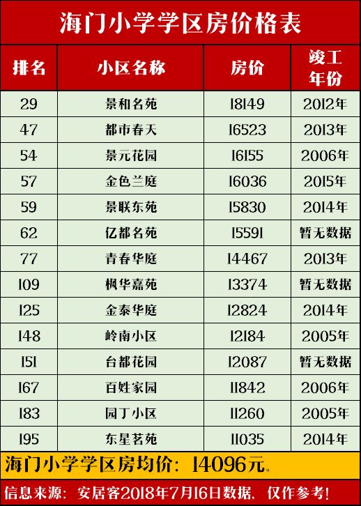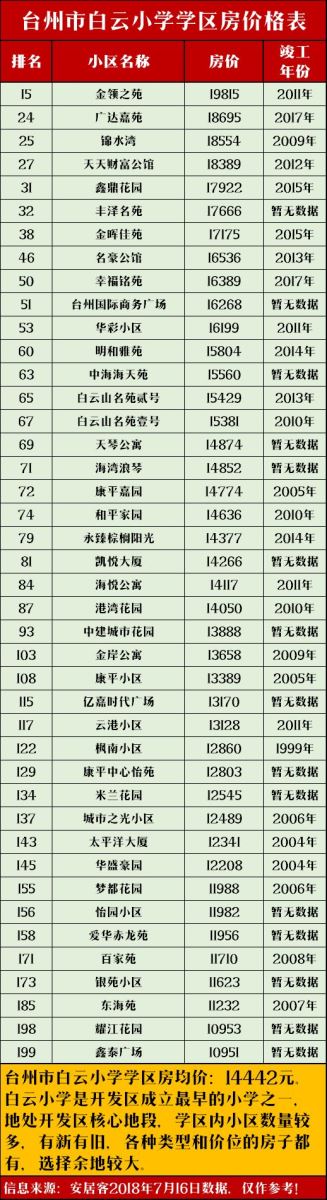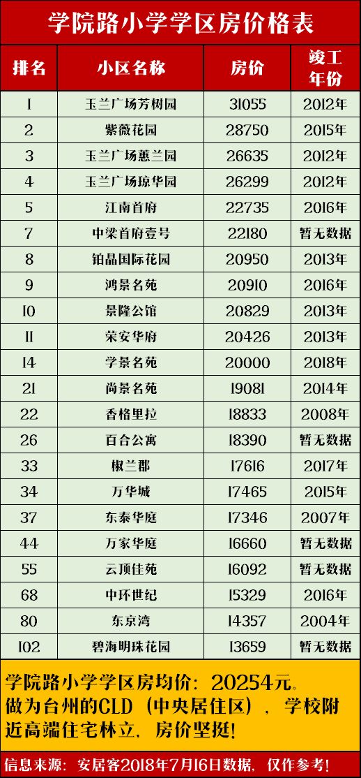 我们搜集了台州数十所小学的学区房均价,