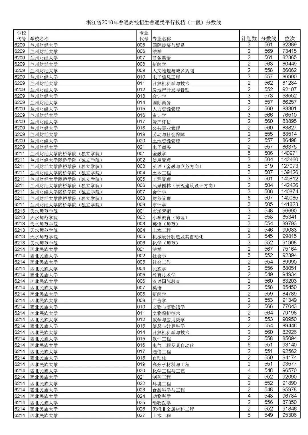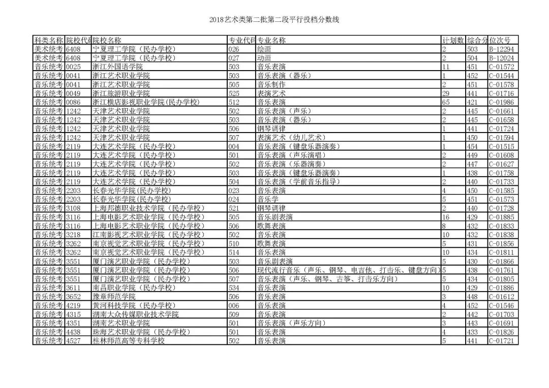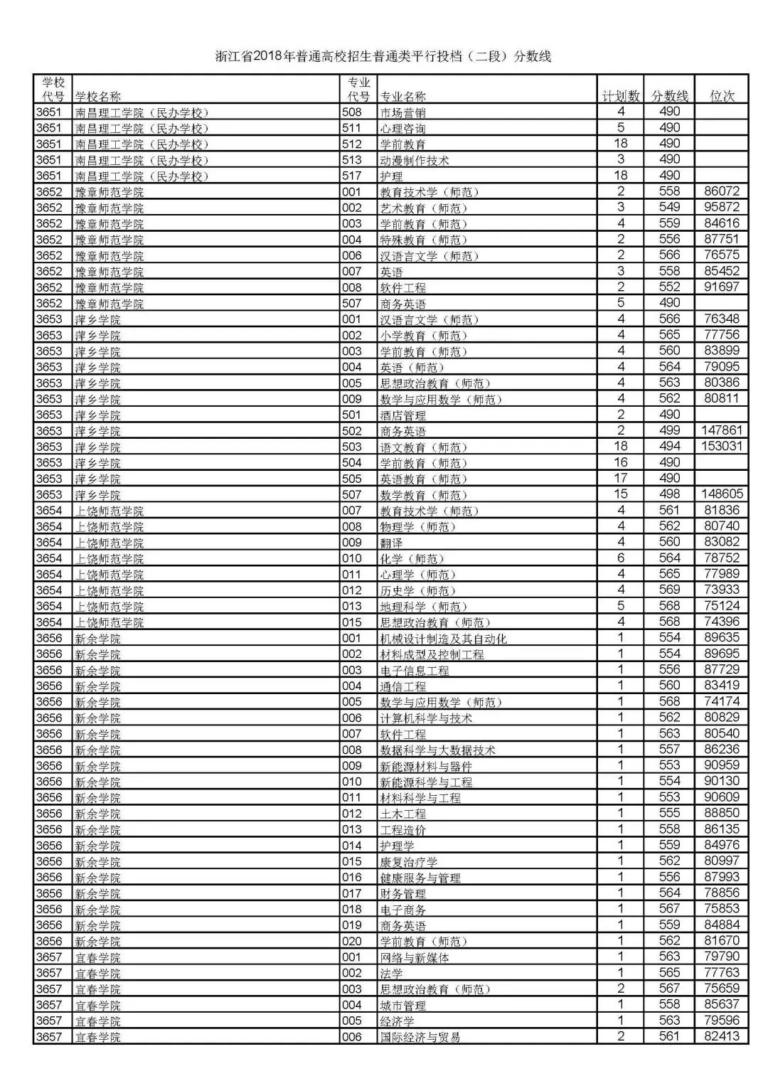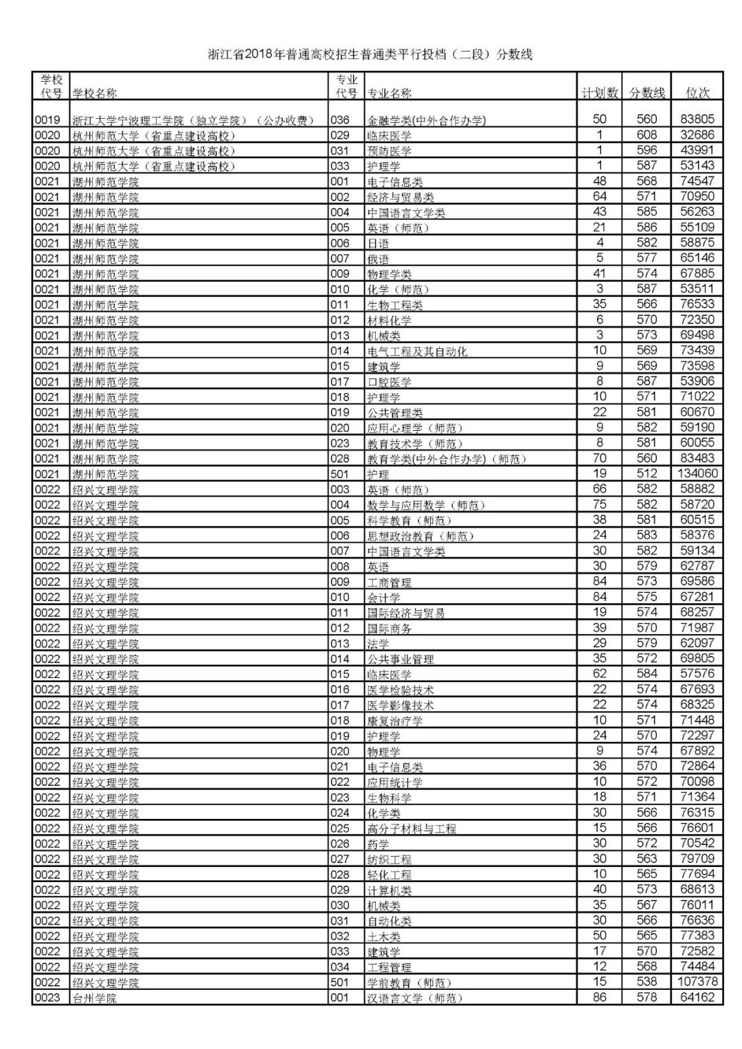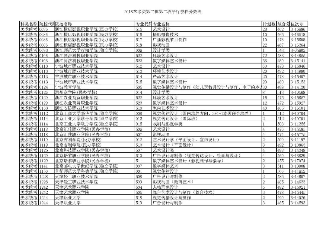 注:位次栏目为空的,表示该学校专业本轮投档人数未满;表中计划数均为一段录取后剩余计划数。