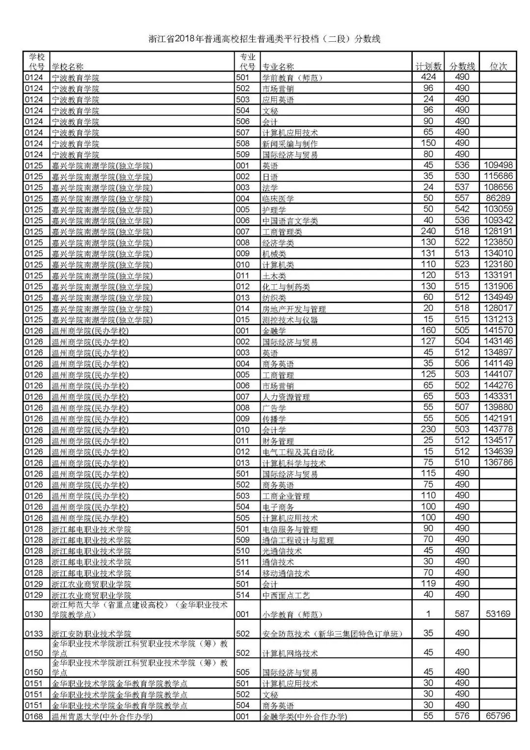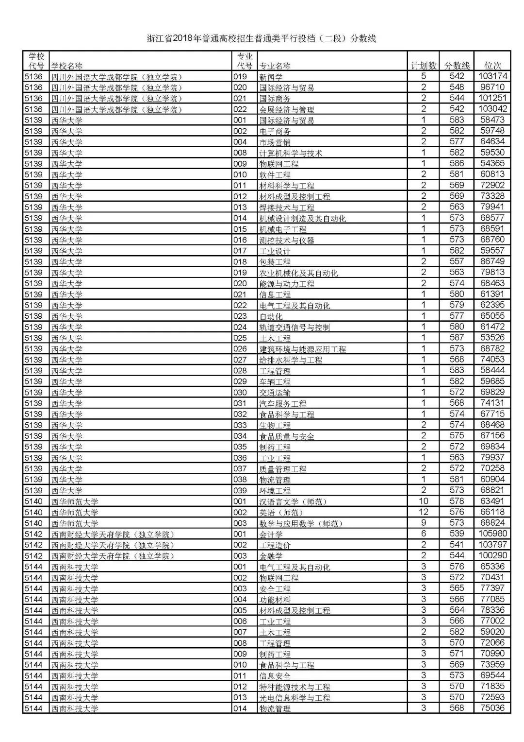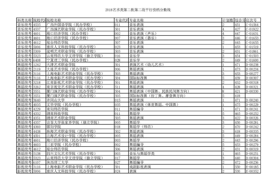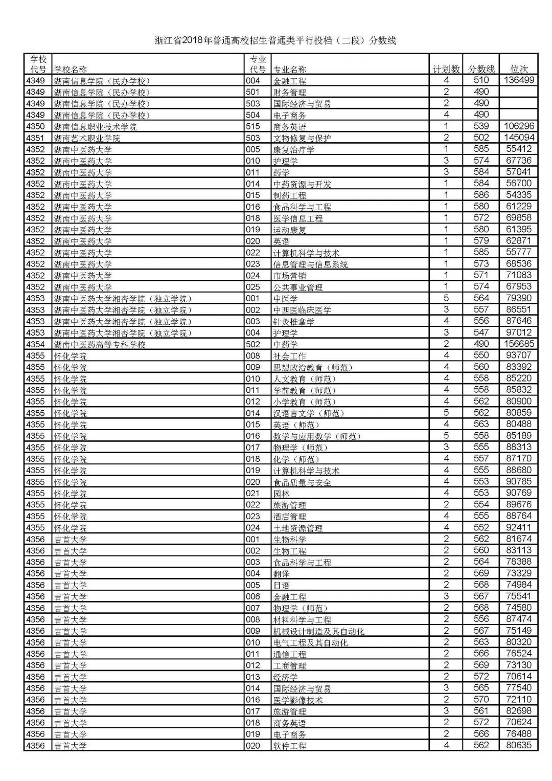 注:位次栏目为空的,表示该学校专业本轮投档人数未满;表中计划数均为一段录取后剩余计划数。