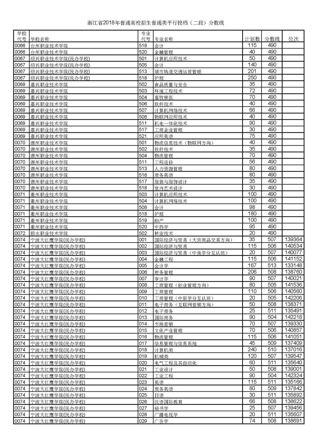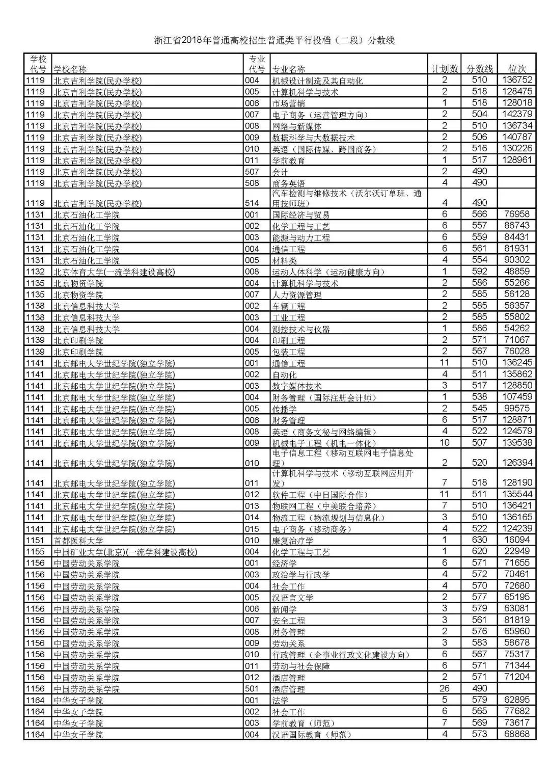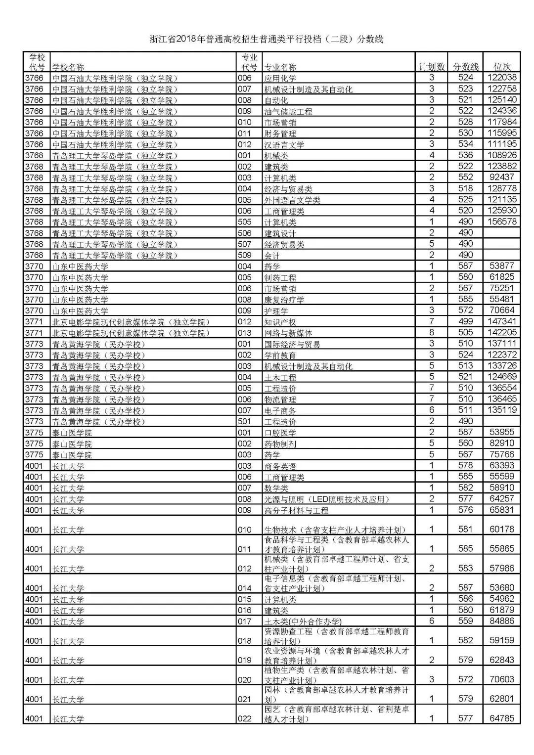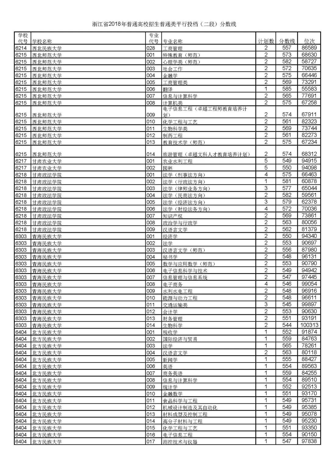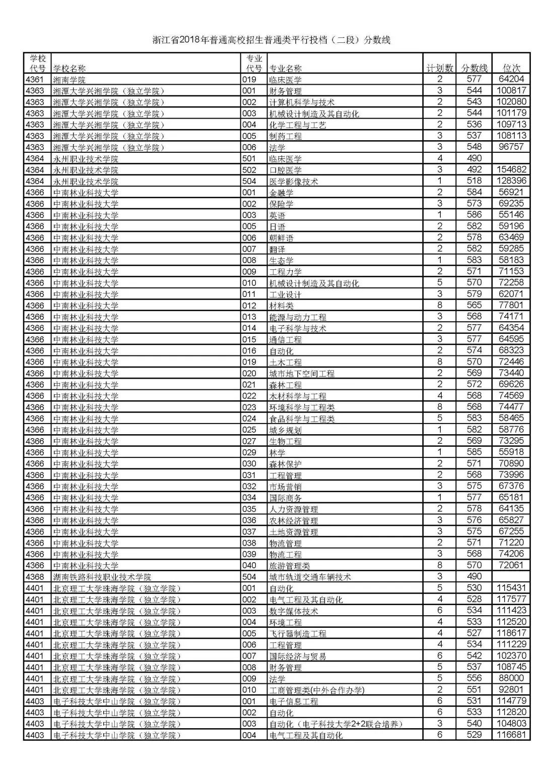 注:位次栏目为空的,表示该学校专业本轮投档人数未满;表中计划数均为一段录取后剩余计划数。