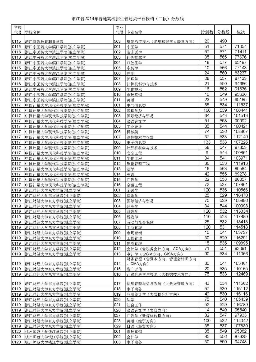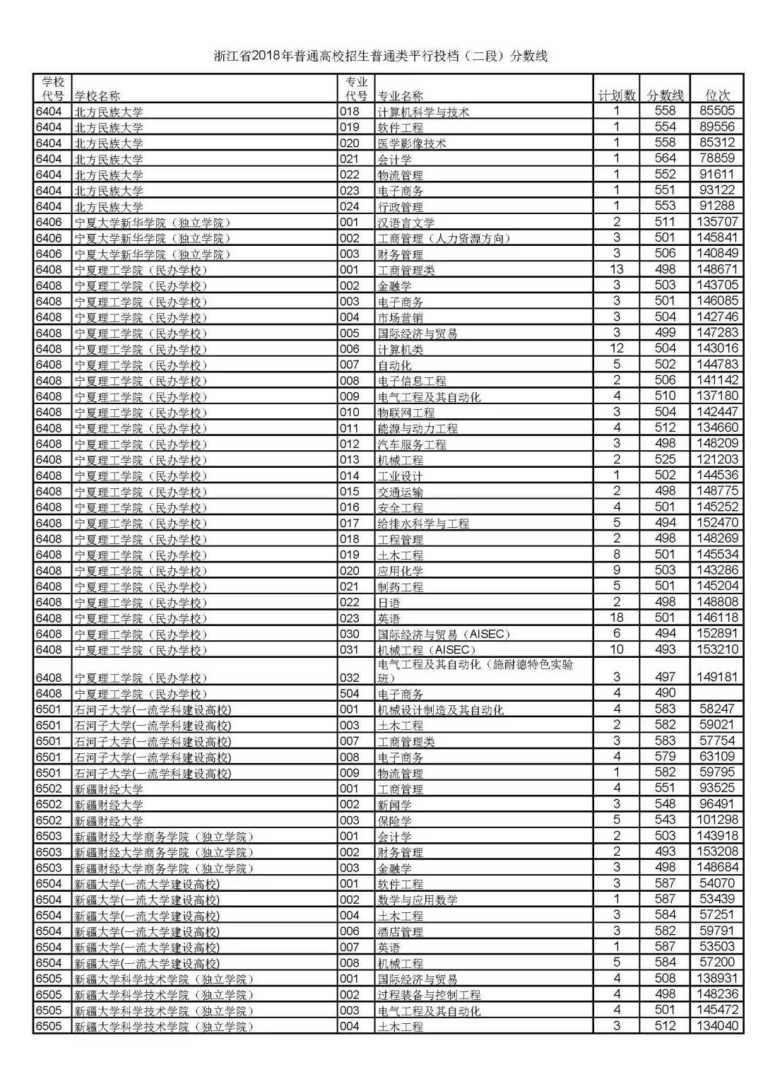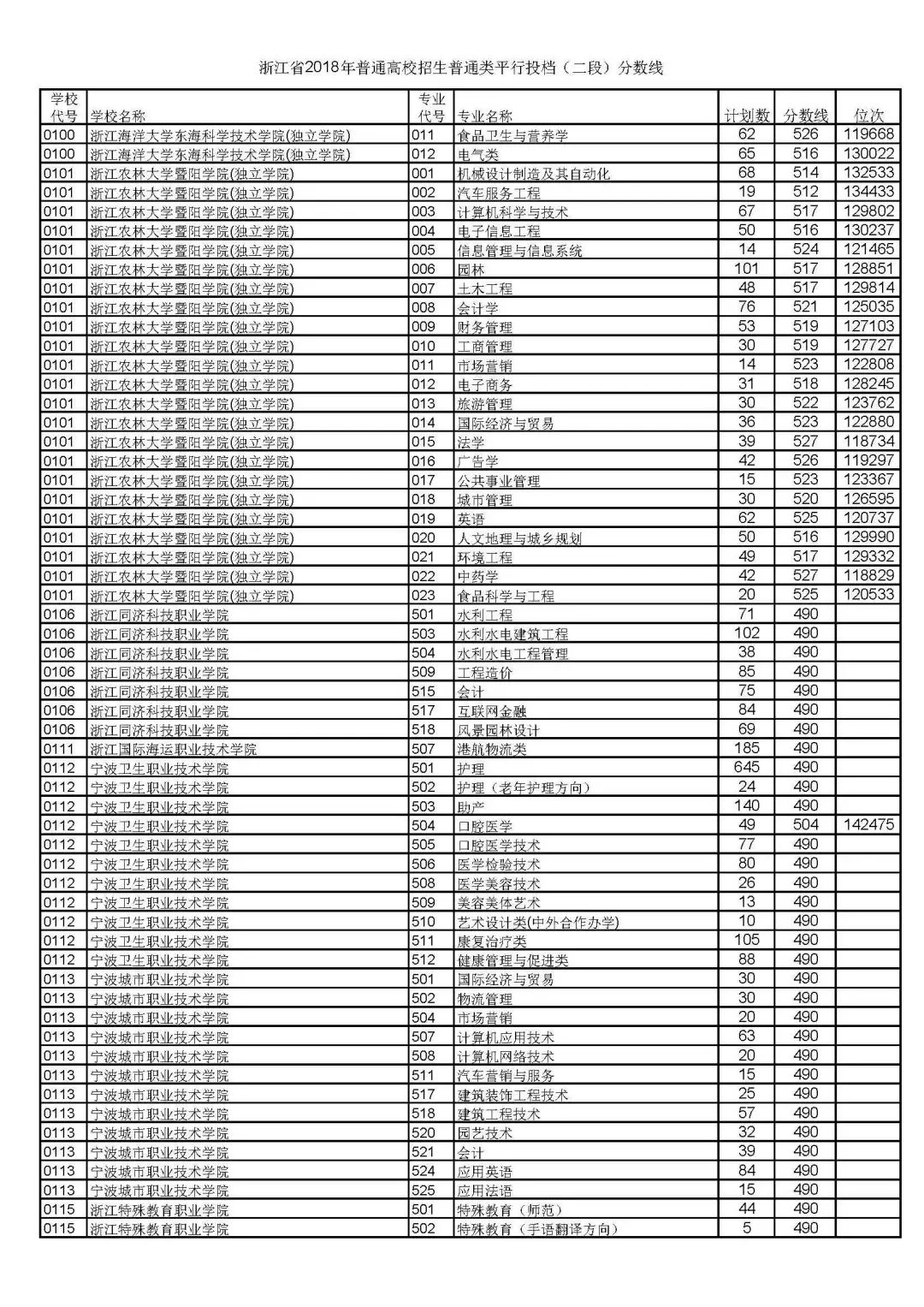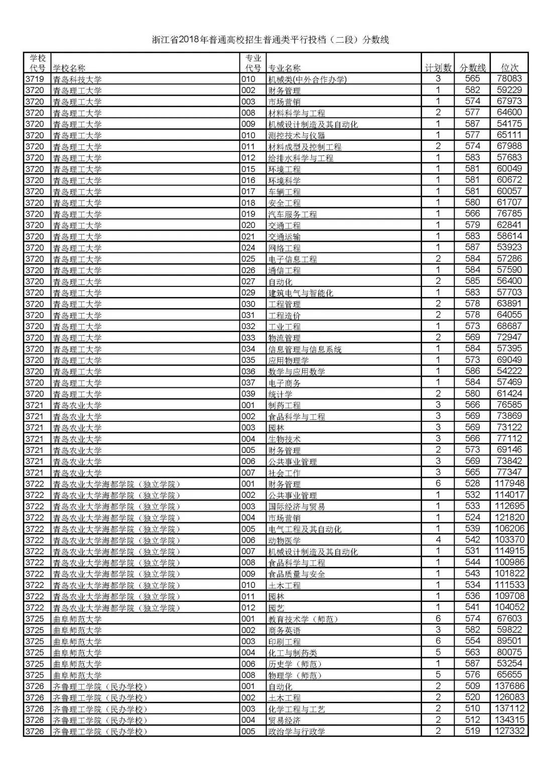 注:位次栏目为空的,表示该学校专业本轮投档人数未满;表中计划数均为一段录取后剩余计划数。