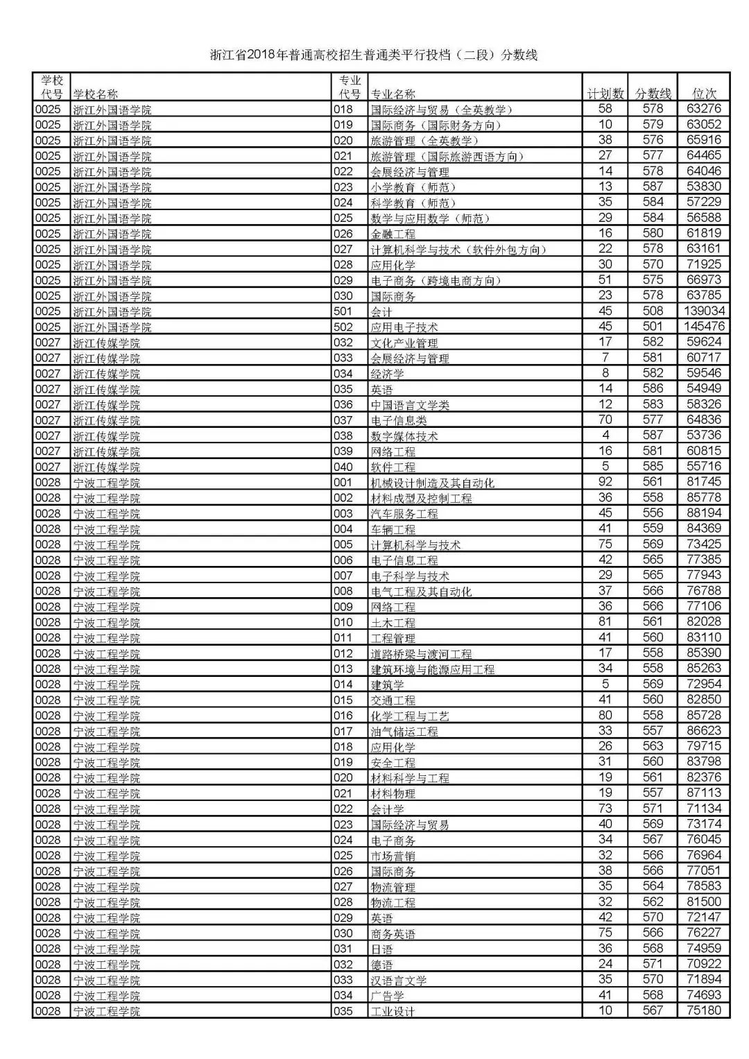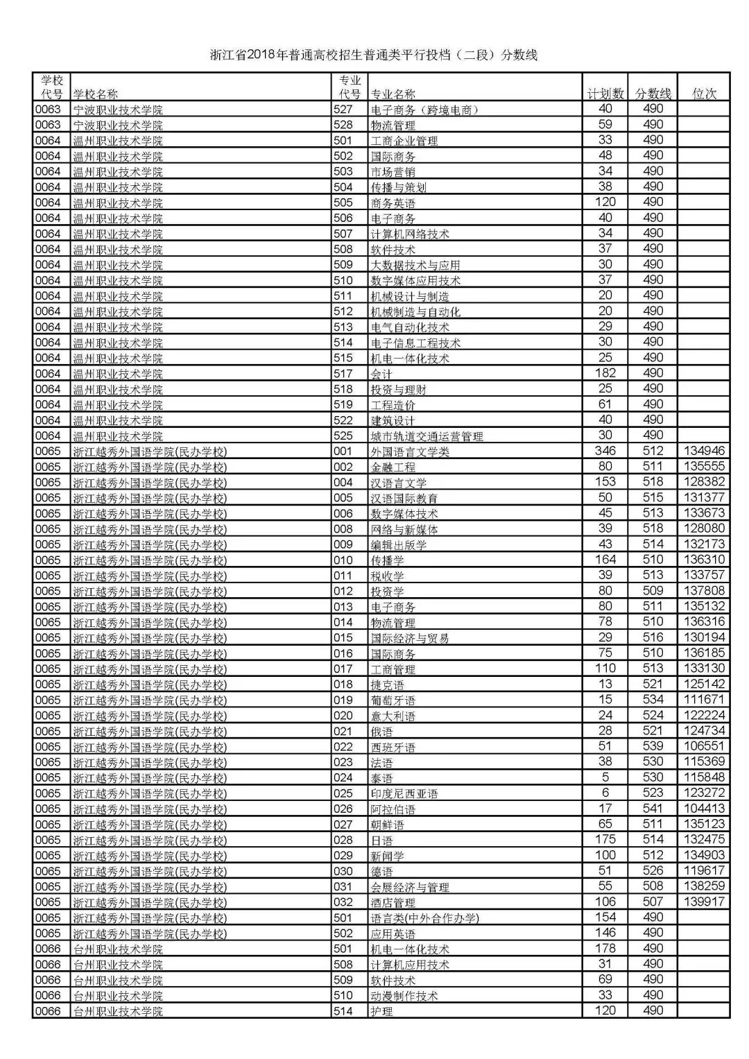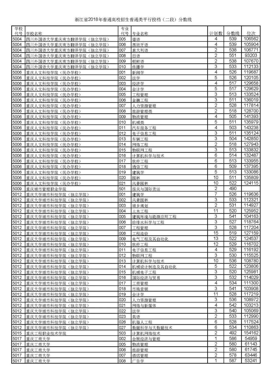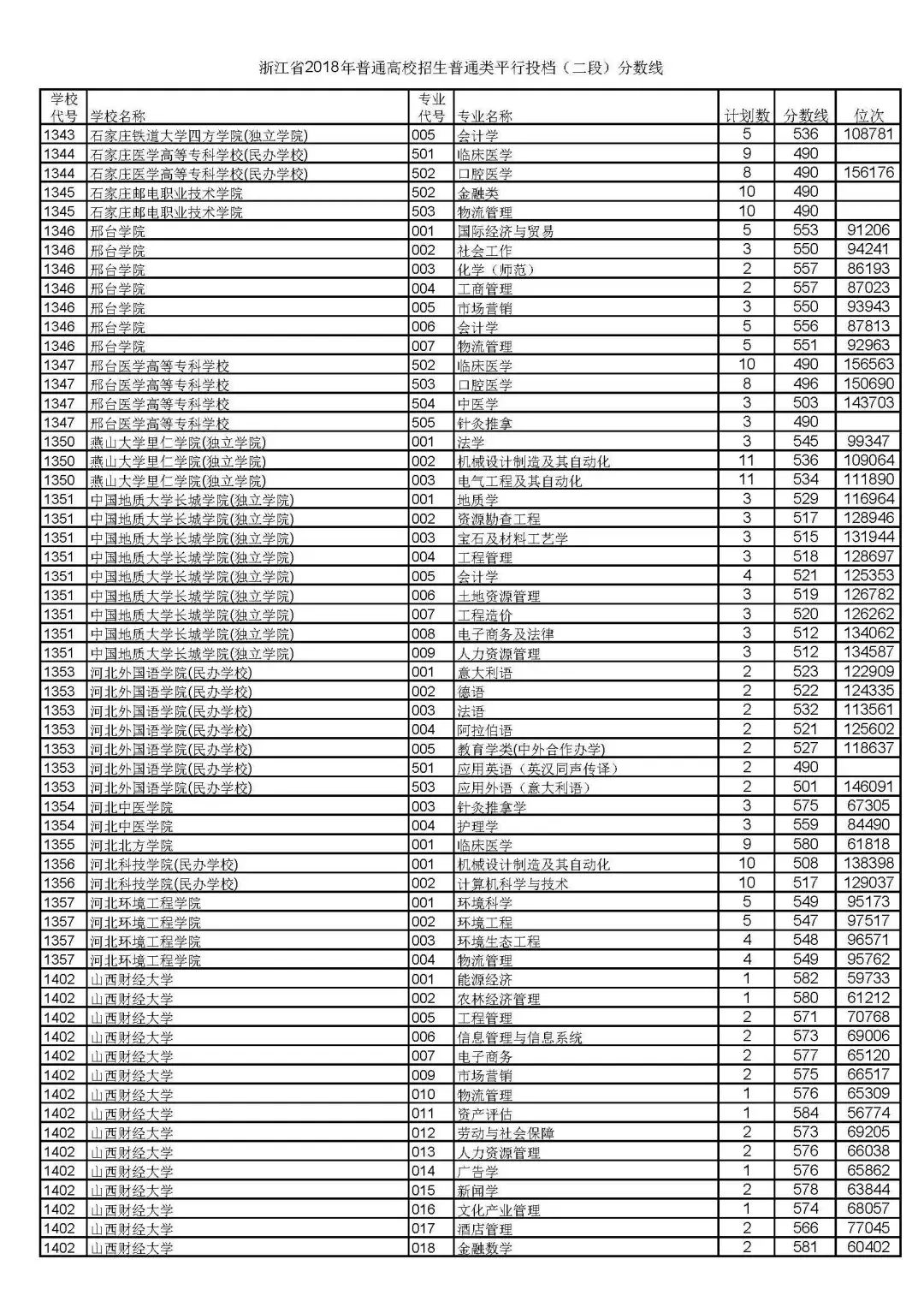 注:位次栏目为空的,表示该学校专业本轮投档人数未满;表中计划数均为一段录取后剩余计划数。