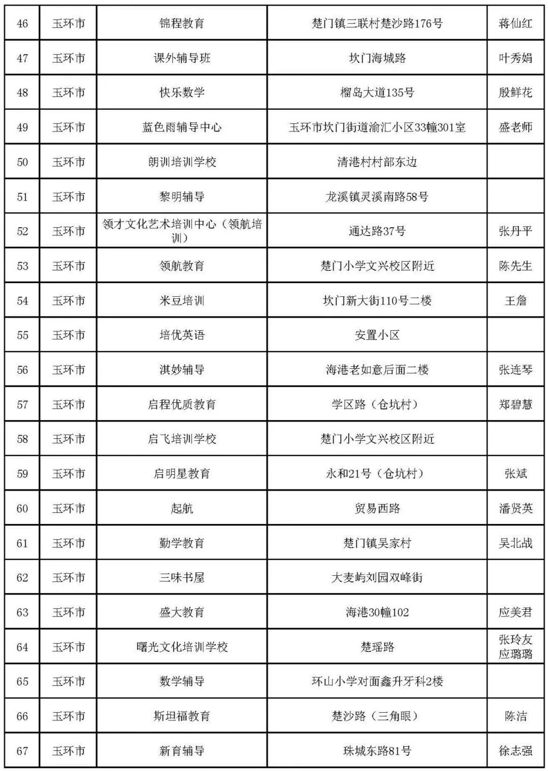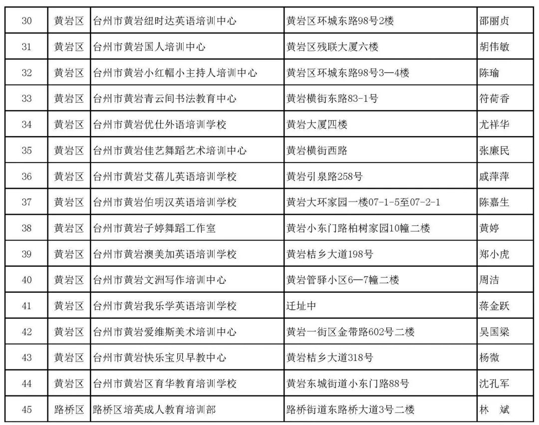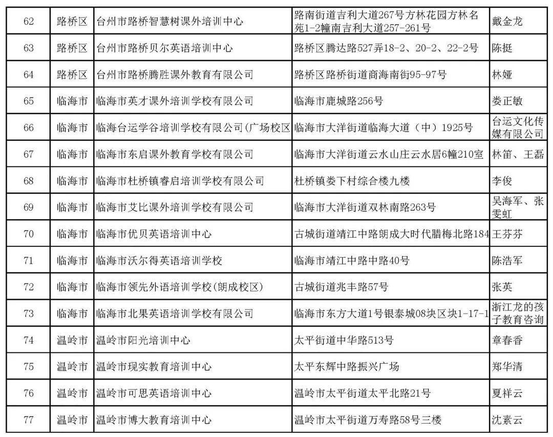 为规范校外培训机构办学行为,切实减轻中小学生课外负担和家庭经济负担,根据教育部等四部委印发的《关于切实减轻中小学生课外负担开展校外培训机构专项治理行动的通知》、省教育厅等六部门印发的《浙江省开展中小学生校外培训机构专项治理行动方案》、市教育局等六部门印发的《台州市开展中小学校外培训机构专项治理工作方案》文件要求,全市各级教育部门对校外培训机构进行了排查摸底和集中整治。