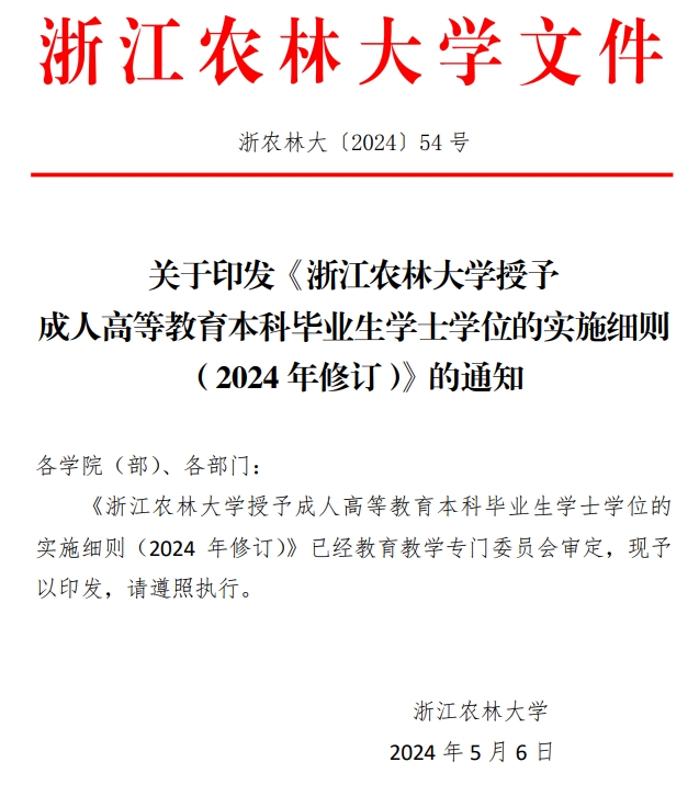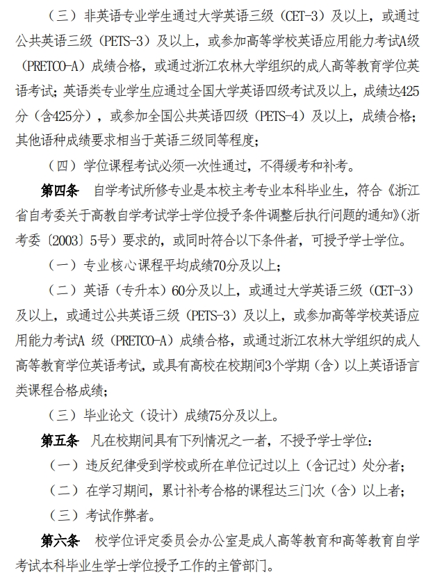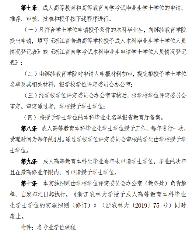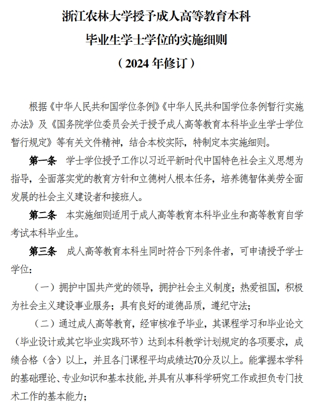 浙江农林大学授予成人高等教育本科毕业生学士学位实施细则