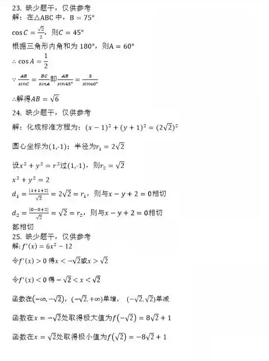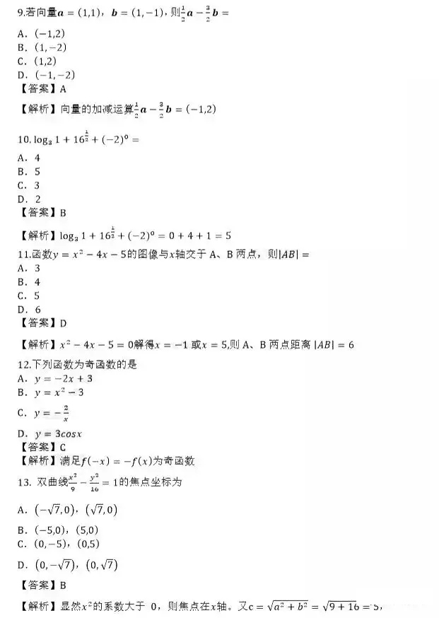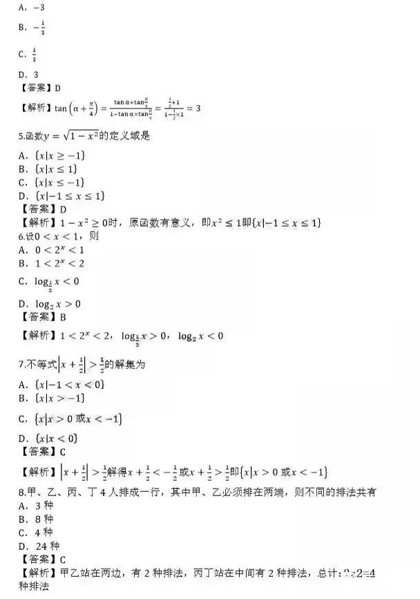 2019年成人高考高起专[数学(文)]真题及答案核对(陆续更新)