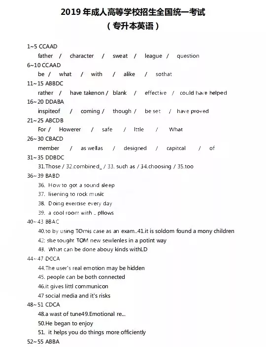 2019年成人高考专升本(英语、高等数学二、教育理论)真题及答案