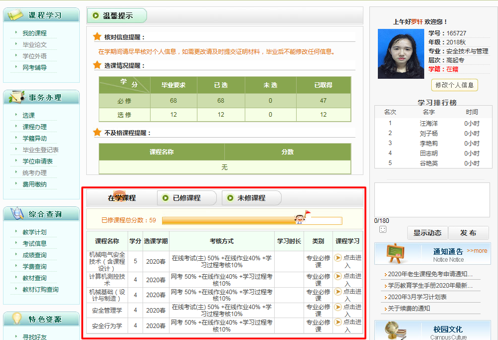 2.进入首页→在学课程。