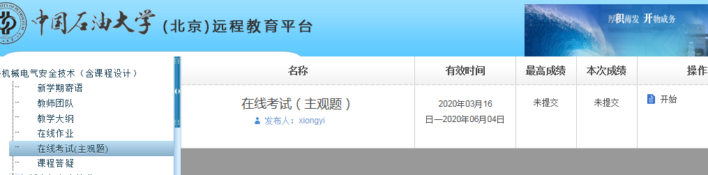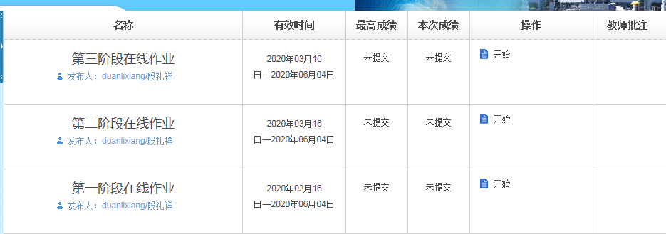 4.左手边点击在线作业→作业分为三个阶段→在线考试(主观题)。