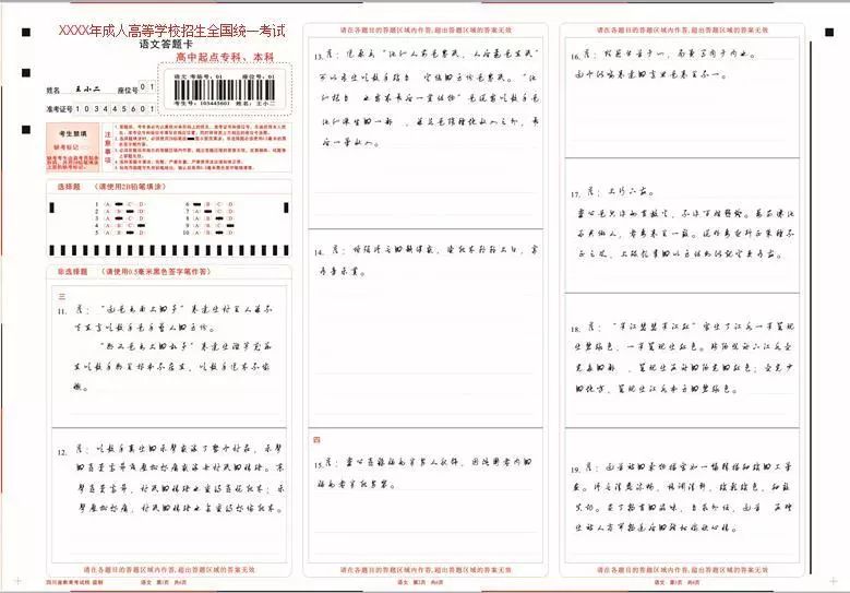 1、非选择题必须使用0.5毫米黑色签字笔作答,否则会影响扫描图像质量及教师评分 ,如下图所示:
