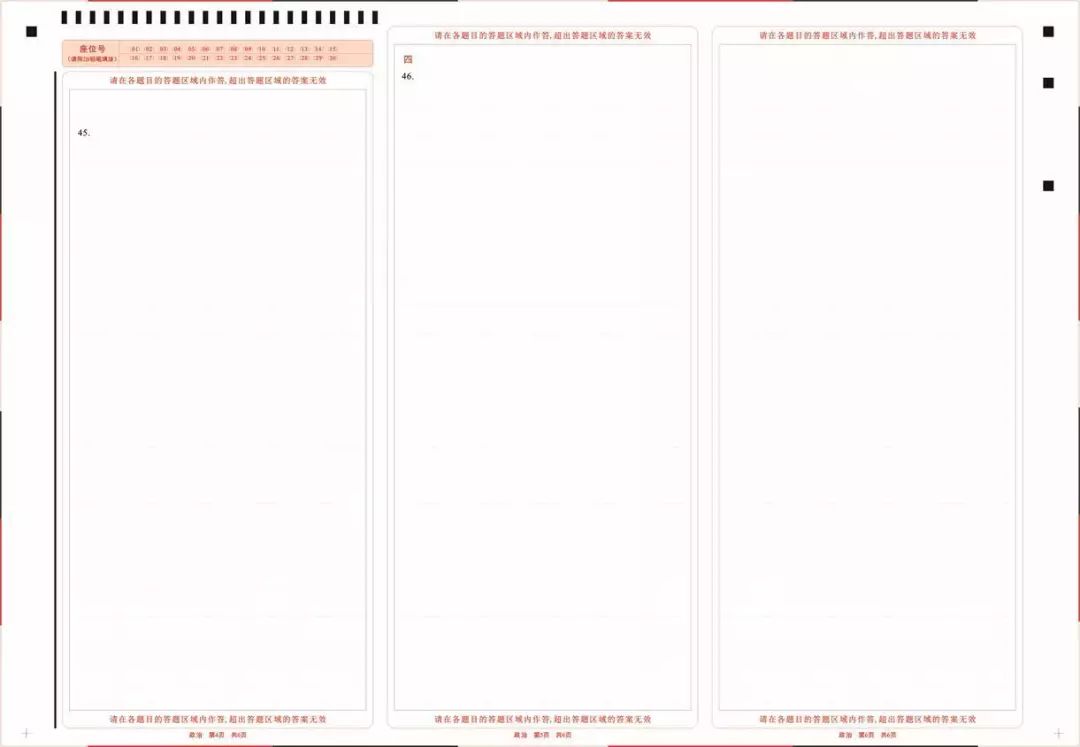 Ø采用网上评卷,考生的答卷经扫描后,每个小题以答题区域框为界,评卷老师只能看到答题区域以内的部分,如果书写答案超过该区域,老师看不到或看不全答案内容,将认为考生该题未答或答案不完整。如下图所示: