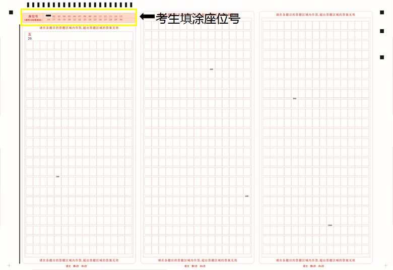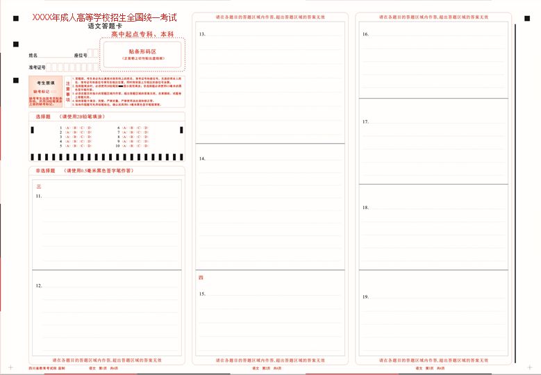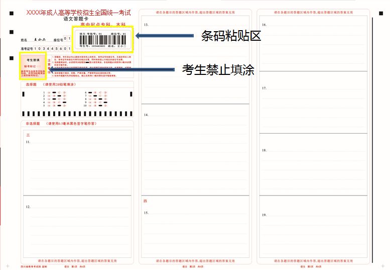 Ø正面填写姓名、座位号、准考证号,粘贴条形码