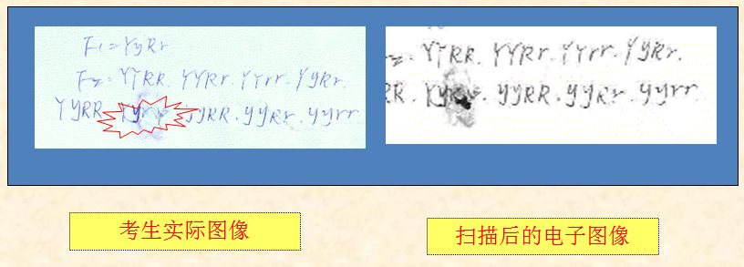 Ø如果某个选项被墨水等物质沾污,会影响计算机识别、评分,如下图所示: