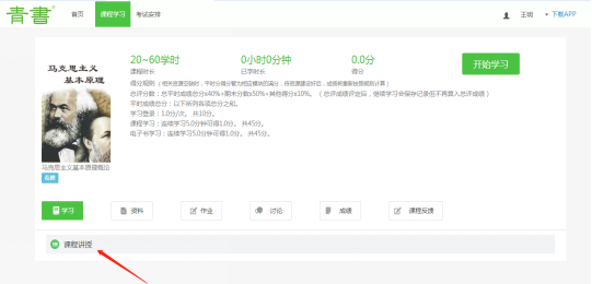 进入某个课程,学习视频课件,点击学习,点击课程讲授。然后点击具体某个小节。然后即可看视频。(切记不可以同时看多个视频)