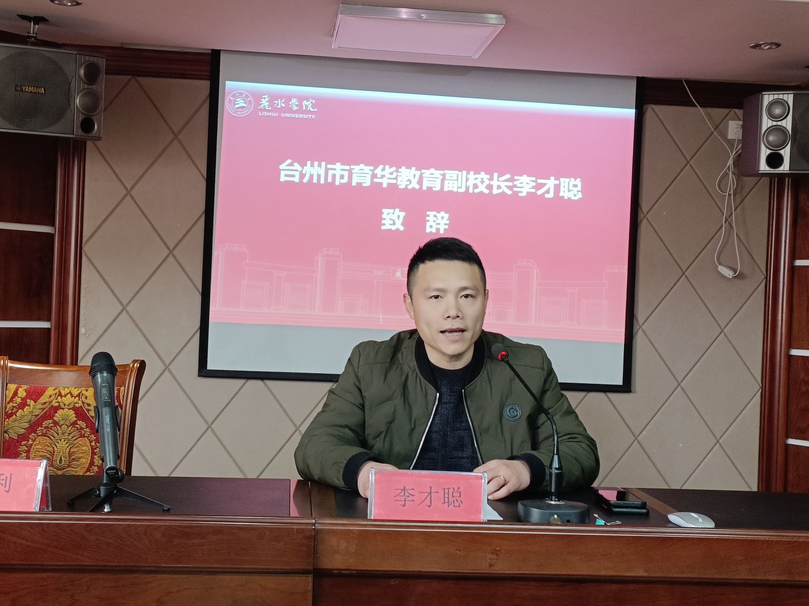 在台下学生热烈的掌声中,台州育华学校副校长兼黄岩校区负责人李才聪上台发表了致辞。