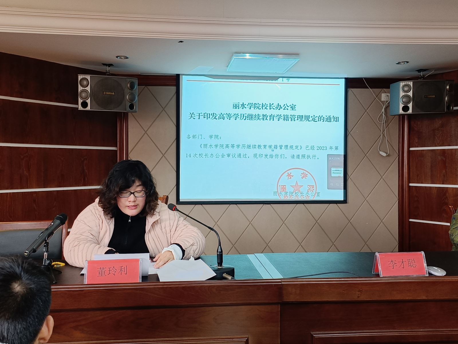 接下来,台州市育华教育教务副校长董玲利发表了讲话,她详细解读了《丽水学院高等学历继续教育学籍管理规定》以及《丽水学院高等学历继续教育学士学位授权细则》,并针对学生们的现场提问提供了解答。