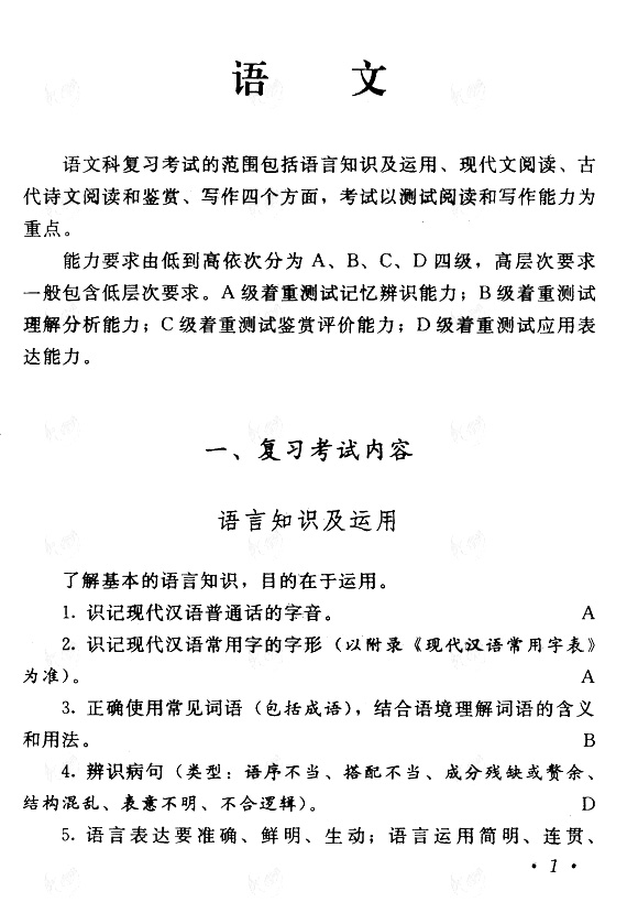 2011年新版《全国各类成人高等学校招生复习考试大纲(高中起点·语文)》已经颁布,供学员复习参考: