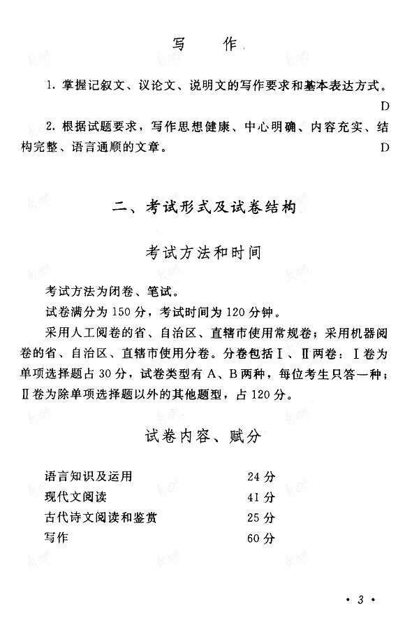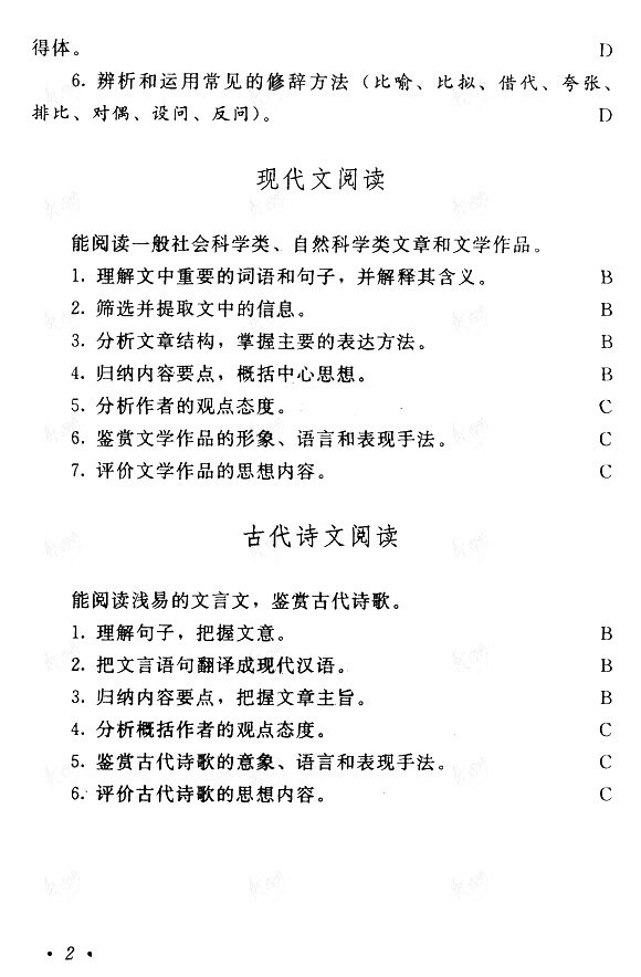 全国成人高考2011年版考试大纲:高起点(语文)