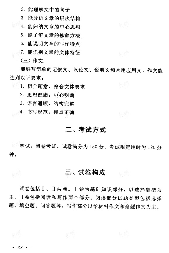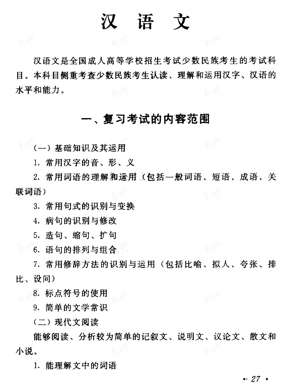 全国成人高考2011年版考试大纲:高起点(汉语文)