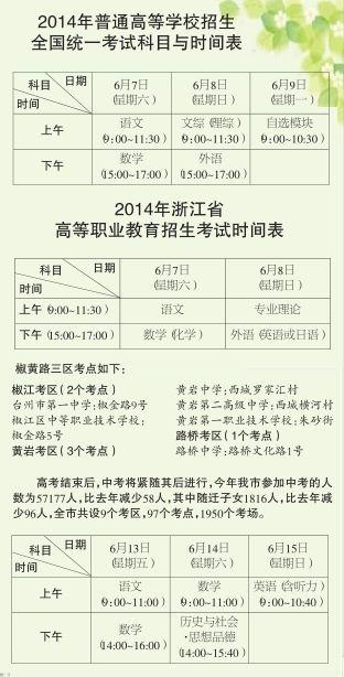 每年的6月总是特别忙碌,两个备受关注的“大考”让市民提前感受到夏日的“热度”。昨天,记者从台州市教育局了解到,今年高考将在6月7日拉开大幕,中考紧随其后,在6月13日进行,时间均为3天。届时,我市共有3.3万学子参加高考,5.7万考生参加中考。