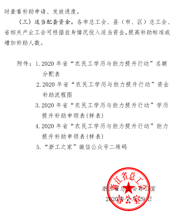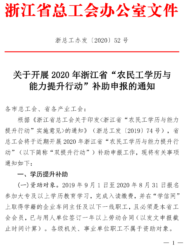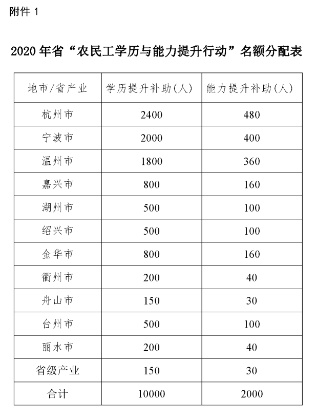 关于开展2020年浙江省“农民工学历与能力提升行动”资金补助申报的通知