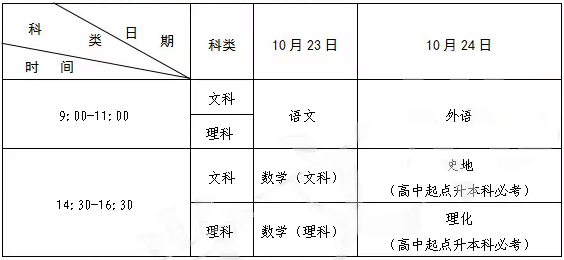 1、高起专层次上午的考试时间为9时至11时,下午的考试时间为14时30分至16时30分,各持续两个小时;