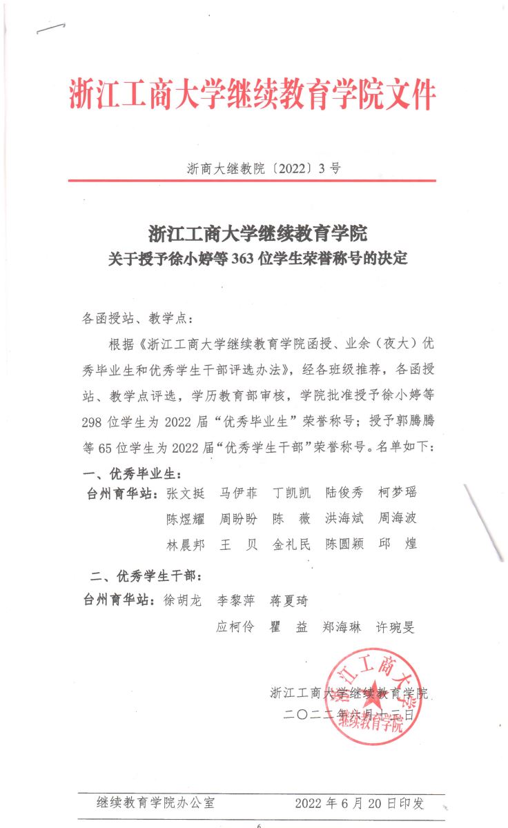我校20级22名学员荣获浙江工商大学成人高等学历教育优秀毕业生称号 |