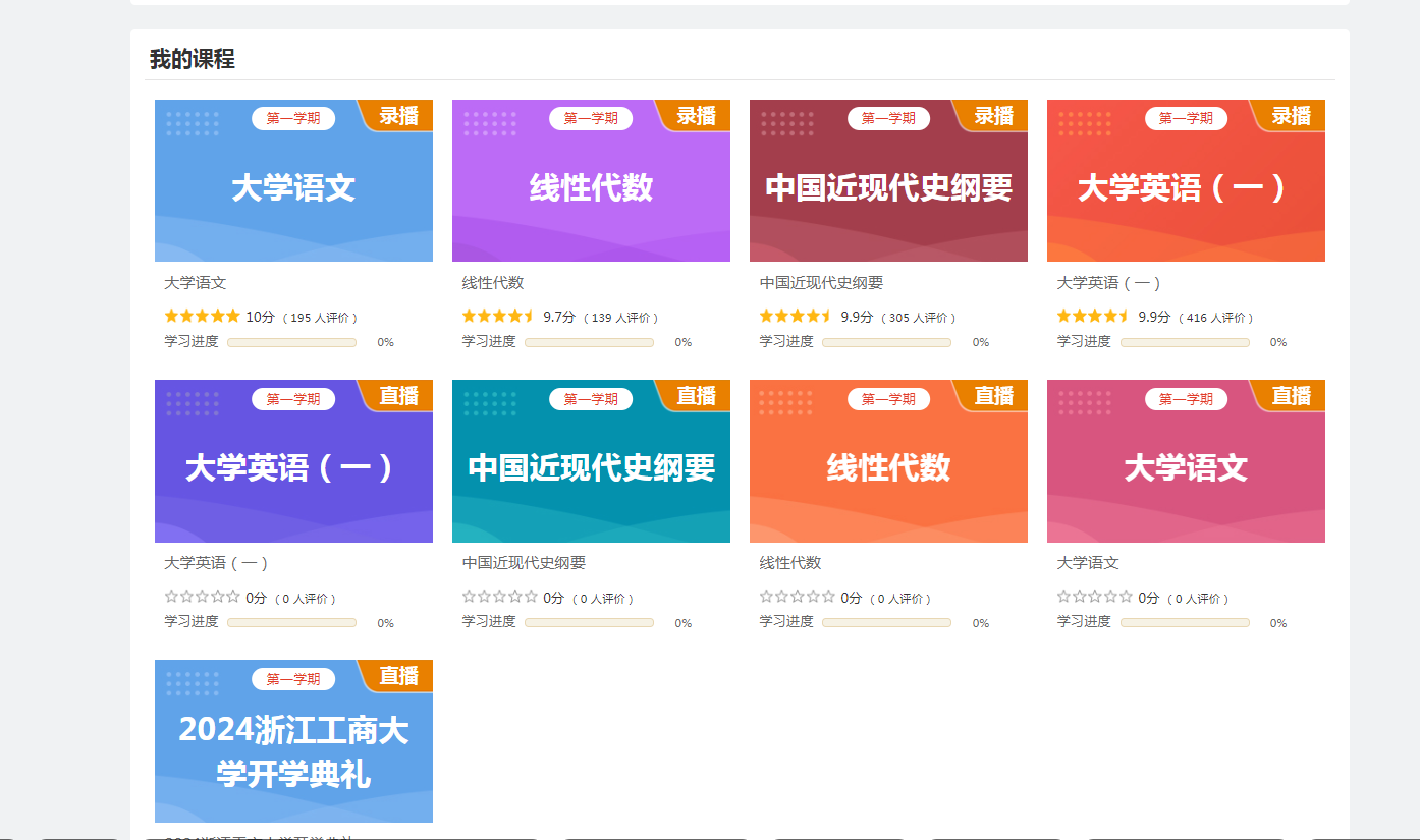 1、“我的课程”里的本学期所有课程听课进度要求完成100%;