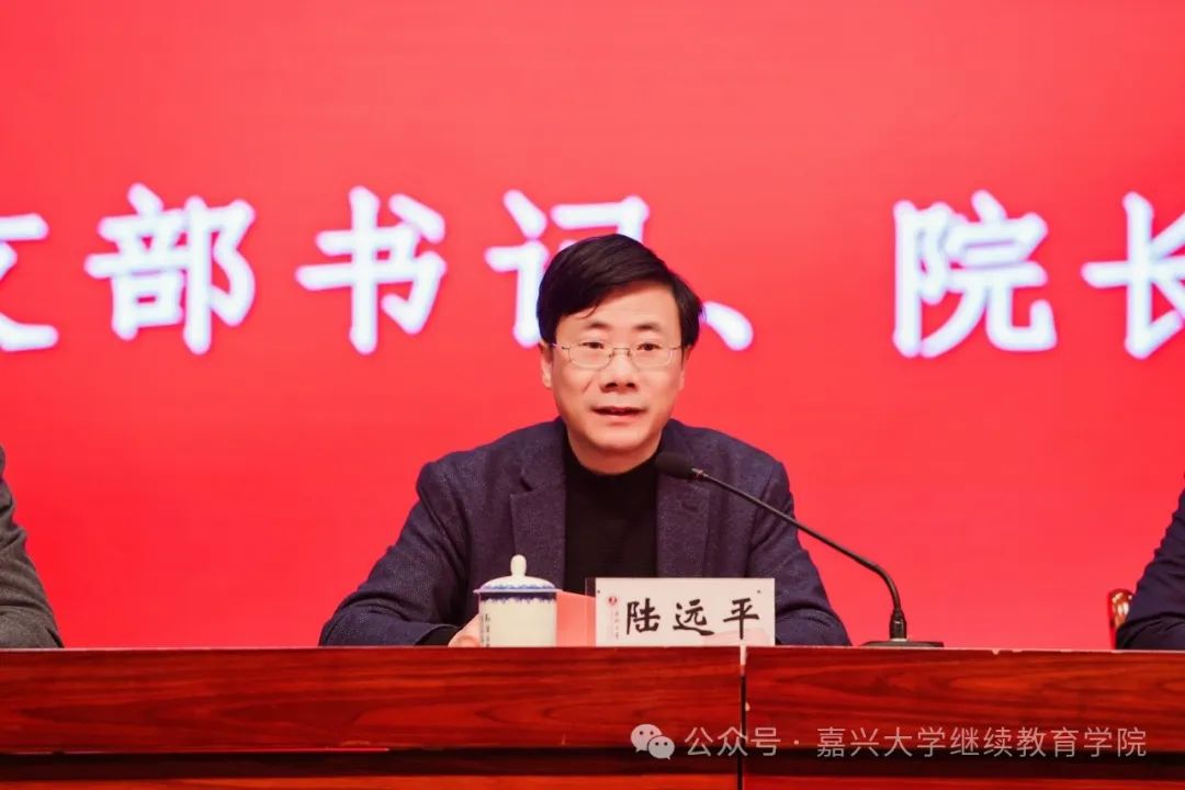嘉兴大学继续教育学院直属党支部书记、院长陆远平同志讲话。