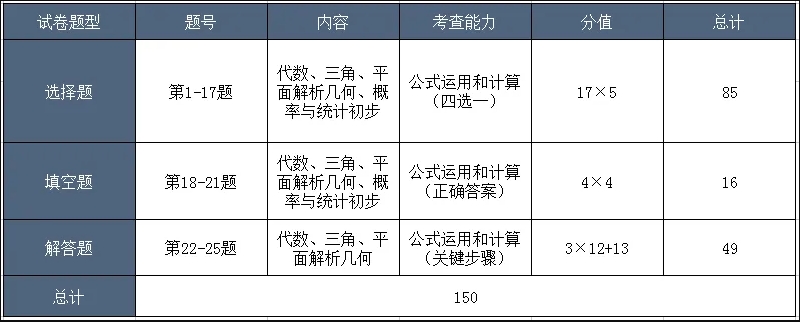 (专科)选择题105分+填空题15分+作文30分=150分。
