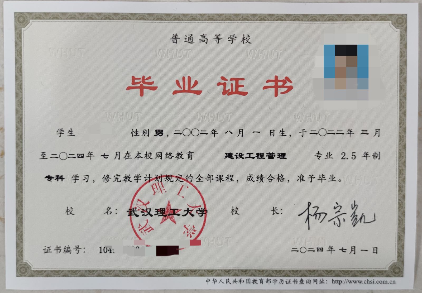 武汉理工大学成人高等教育2022级春季学生的毕业证已办理完毕,现将有关发放和领取证书的要求通知如下:
