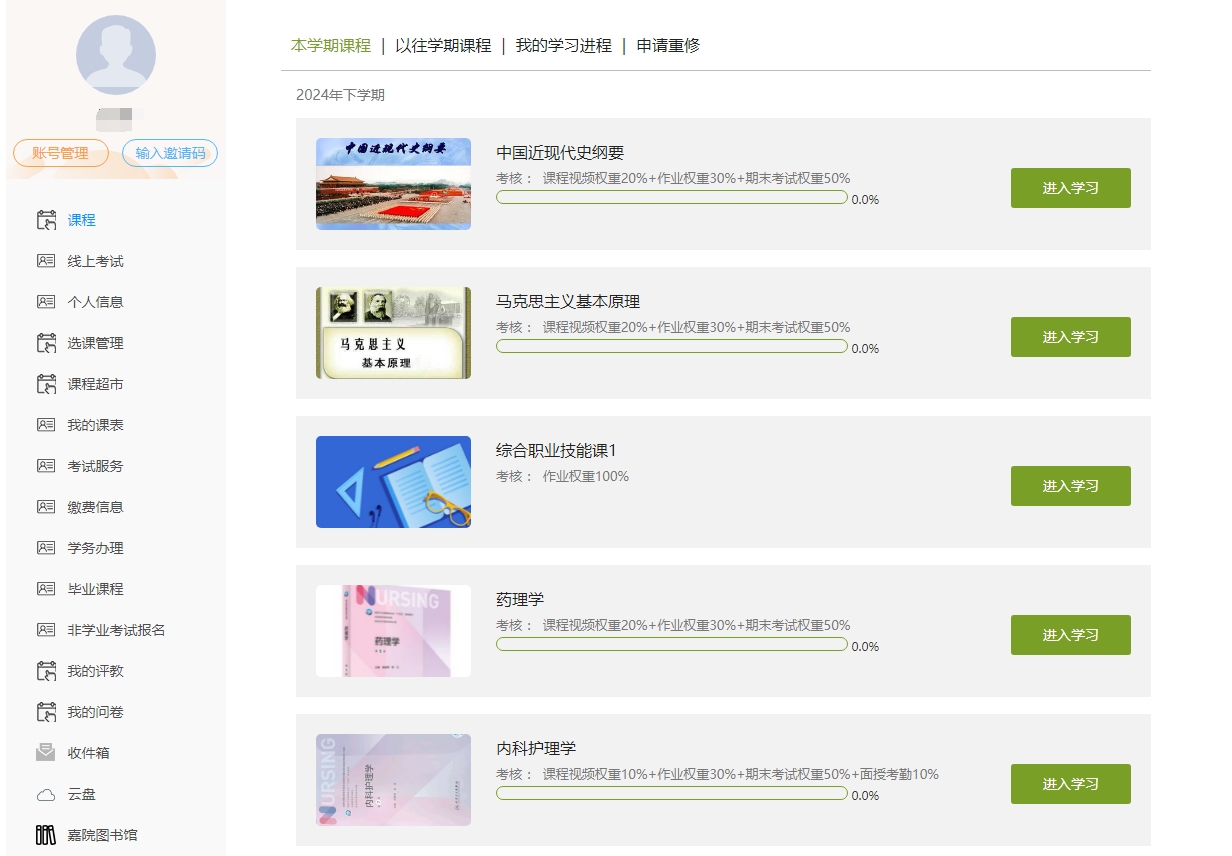 嘉兴大学成人教育2024级(第二学期)在线学习一览表 |