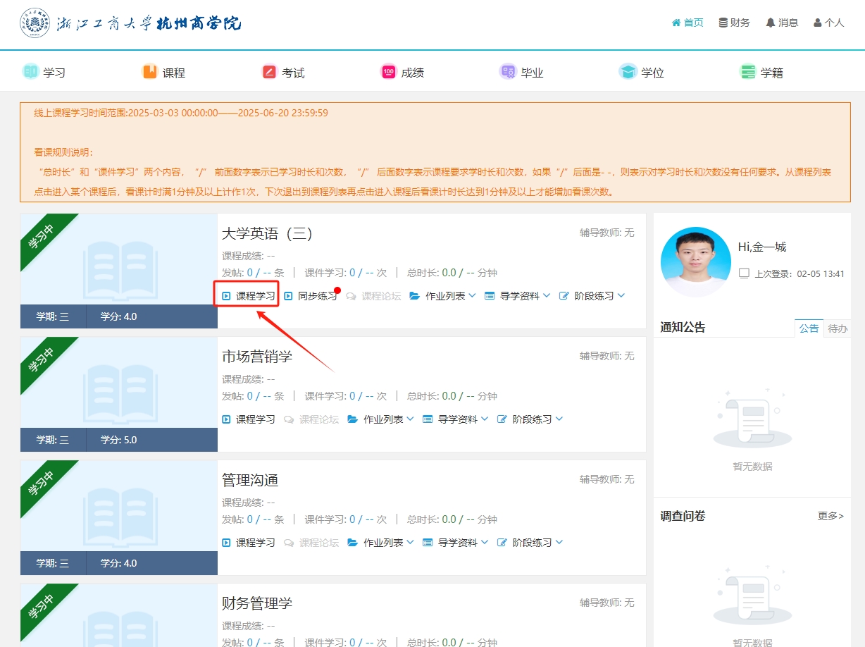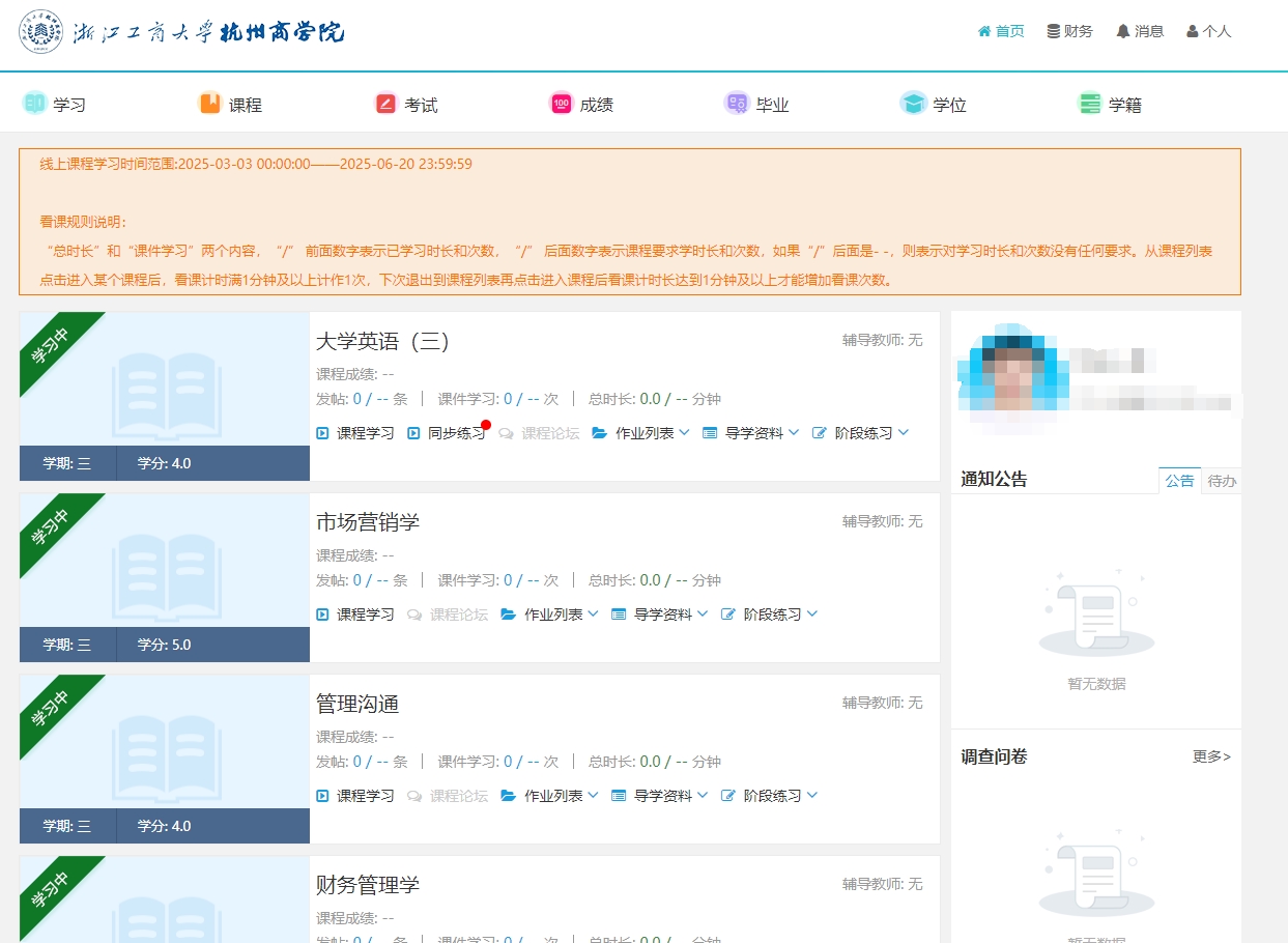 关于浙江工商大学杭州商学院高等学历教育2025级(第一学期)课程在线学习的通知