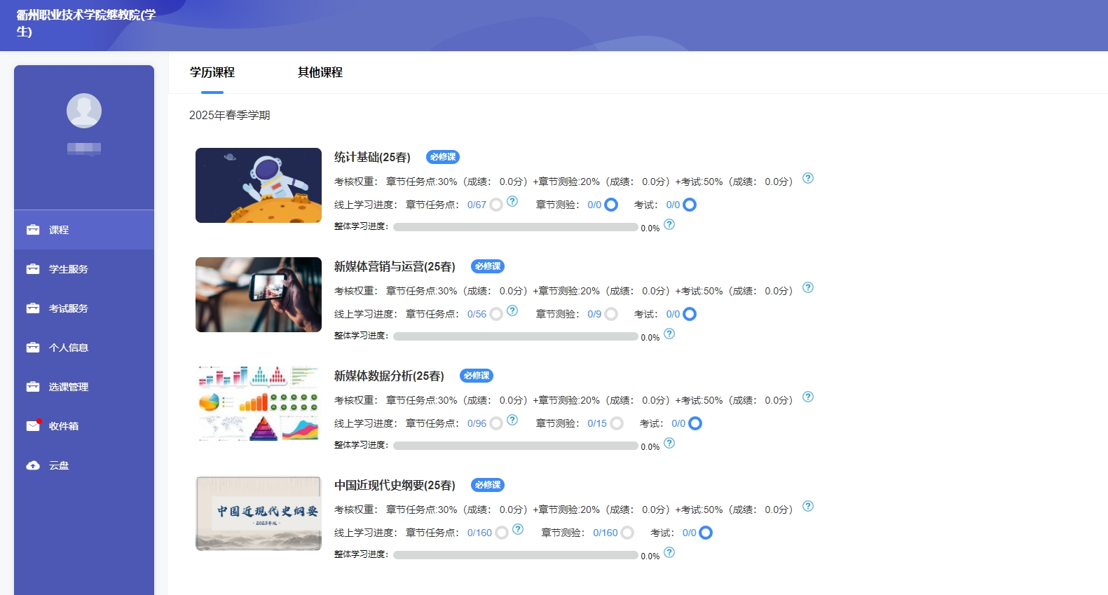 衢州职业技术学院高等学历教育2024级(第三学期)在线学习一览表 |