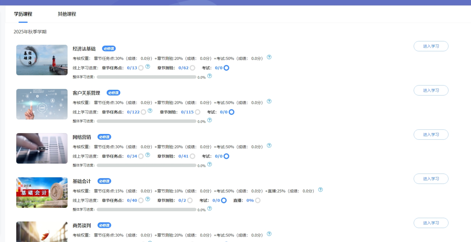 1、“课程”里的本学期所有课程听课进度要求完成100%;