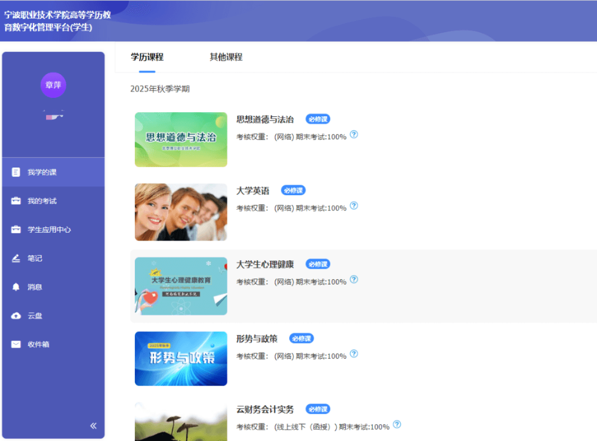 第二步:学员进入个人的学习平台后,可点击相应课程进行学习。