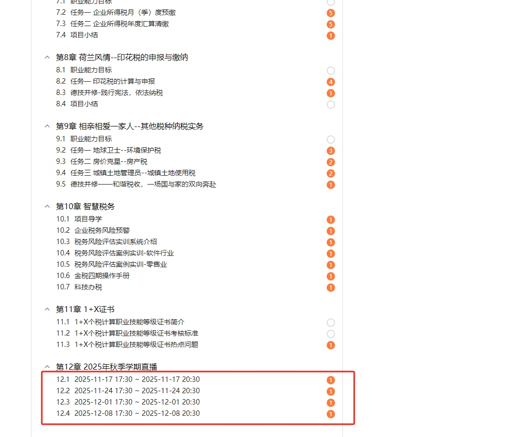 第三步:所有科目要求100%听完,直播课程链接位于学习页面底部。