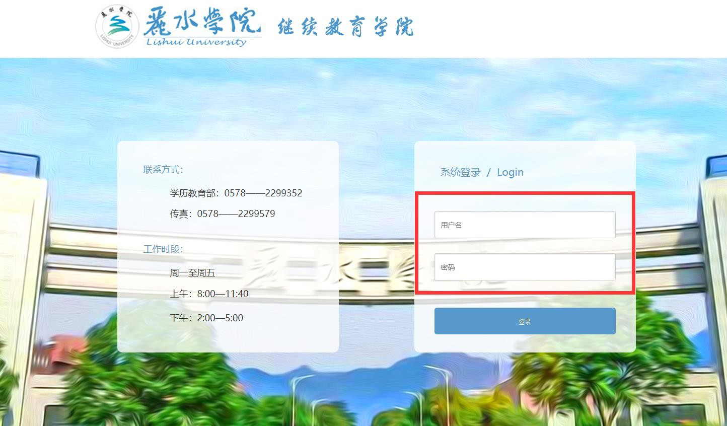输入网址:http://lsxy.zhaomingedu.cn,进入丽水学院继续教育学院在线学习平台。