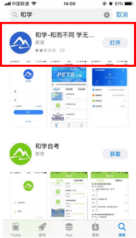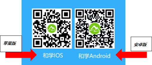 扫描二维码下载最新手机软件, 或者直接在应用市场中搜索“和学”,下载安装。