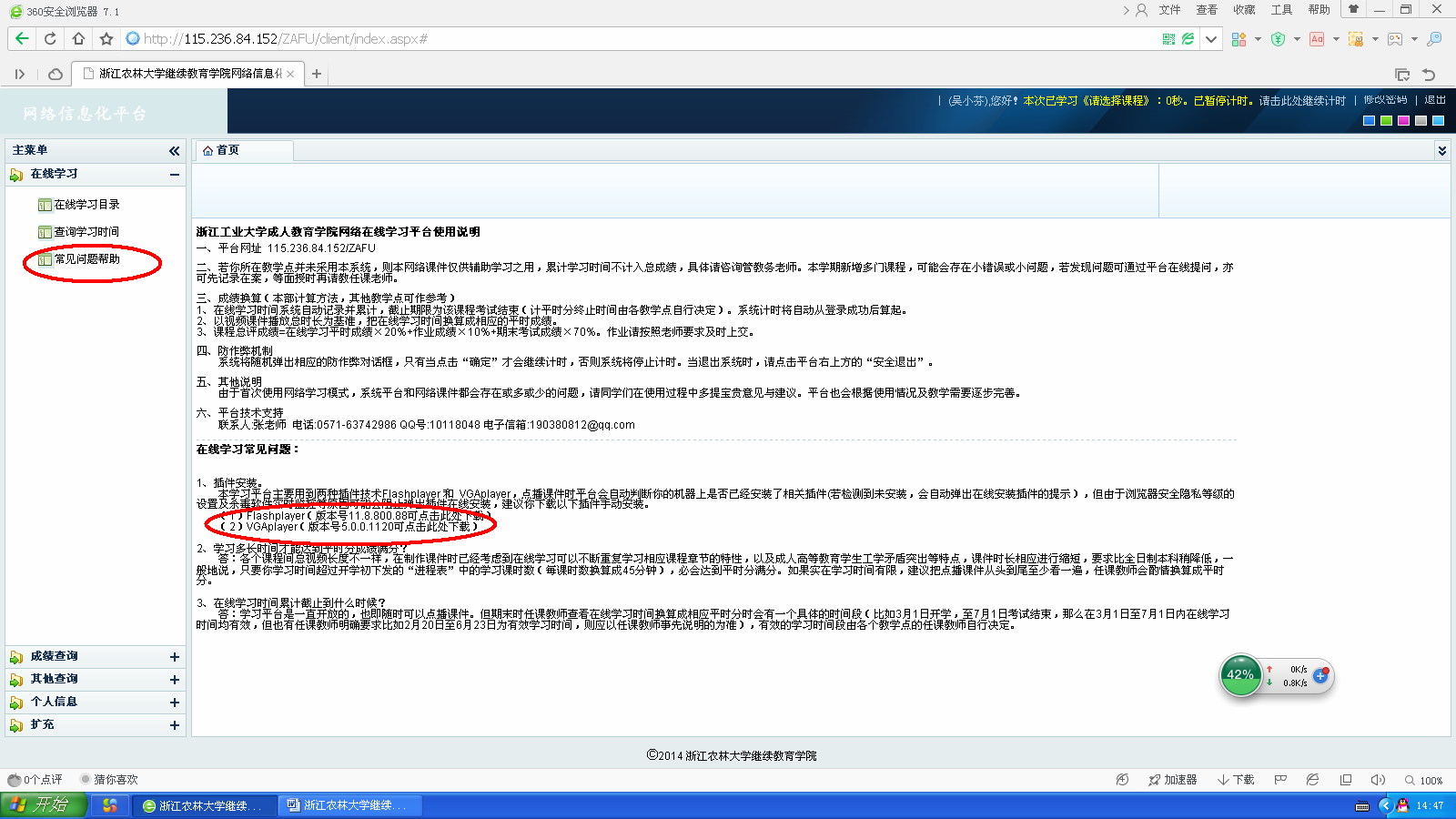 补充说明(2)第一次登录后,如视频播放过程中,遇到经常出现诸如花屏等不顺畅问题,请试用下述方法加以解决:点击“常见问题帮助”,下载并安装插件(任意选择其一)。